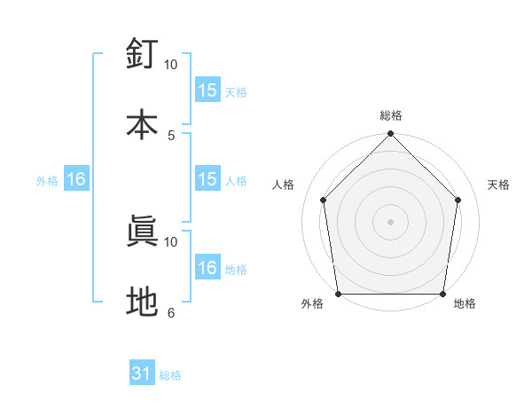釘本 眞地さんを姓名の画数から五運を鑑定