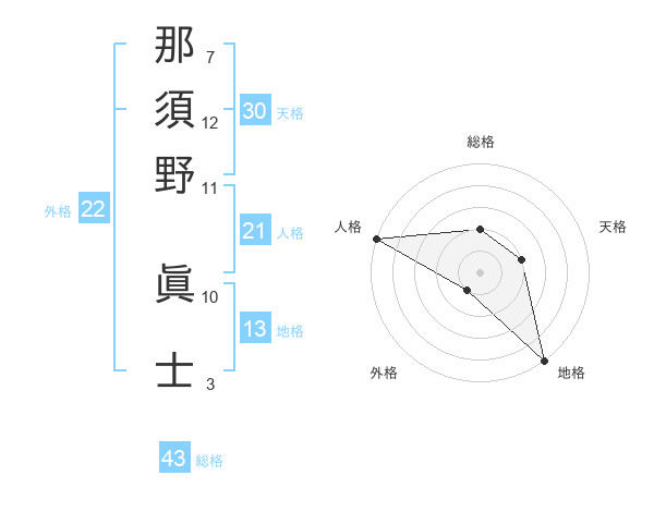 那須野 眞士さんの天格は30画の2点!