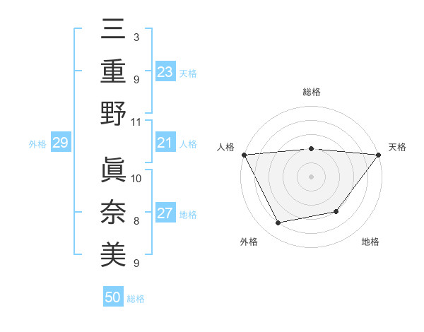 三重野 眞奈美さんを姓名の画数から五運を鑑定