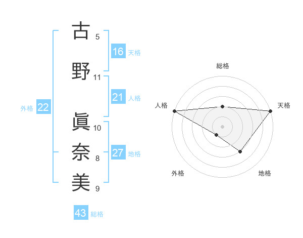 古野 眞奈美さんを姓名の画数から五運を鑑定