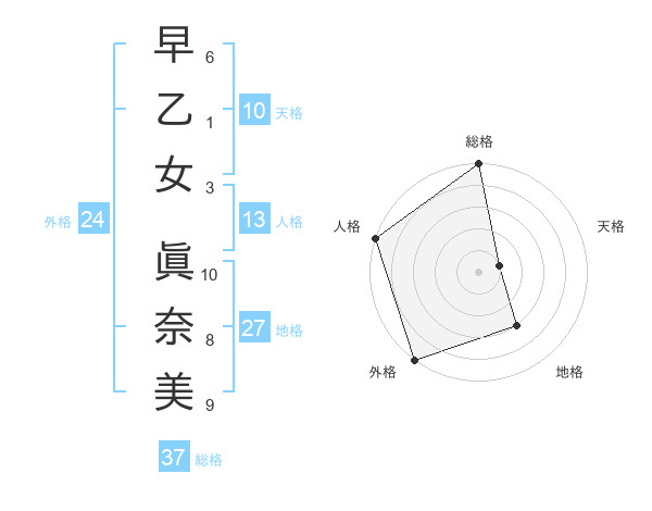早乙女 眞奈美さんの総格は37画の5点