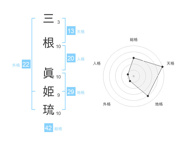三根 眞姫琉さんの外格は22画の1点!
