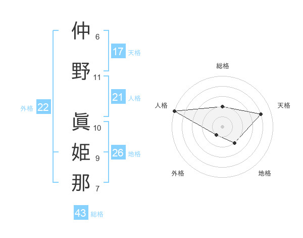 仲野 眞姫那さんの天格は17画の4点!
