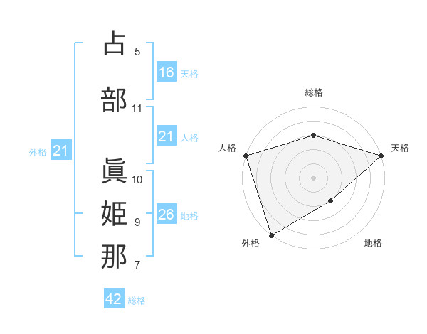 占部 眞姫那さんの天格は16画の5点!
