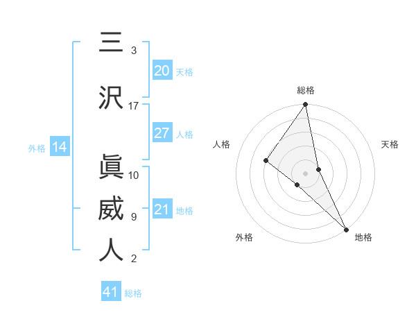 三沢 眞威人さんを姓名の画数から五運を鑑定