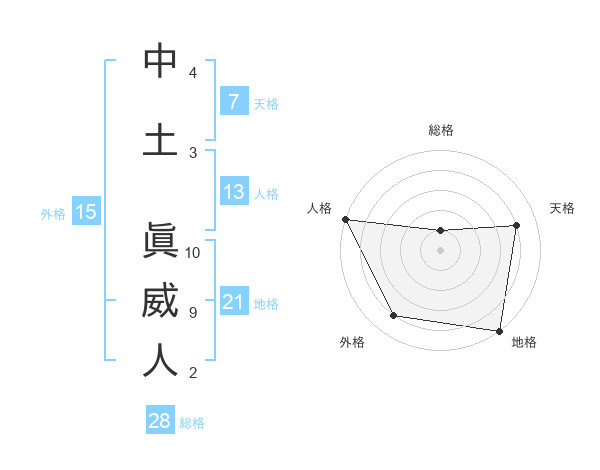 中土 眞威人さんを姓名の画数から五運を鑑定