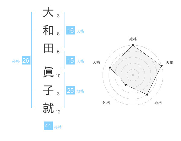 大和田 眞子就さんを姓名の画数から五運を鑑定