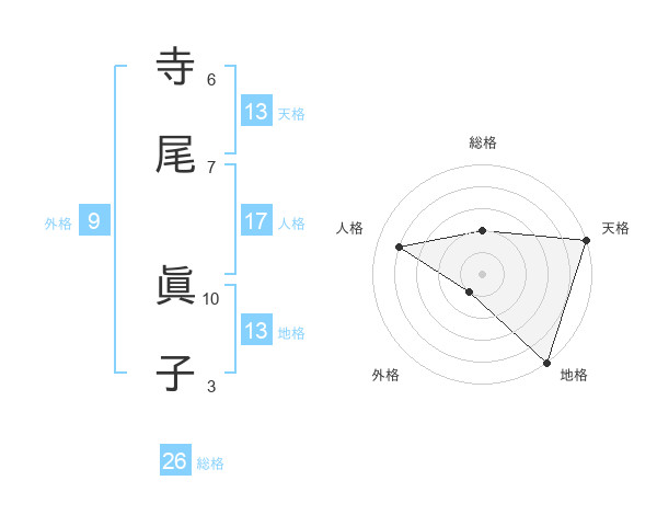 寺尾 眞子さんを姓名の画数から五運を鑑定
