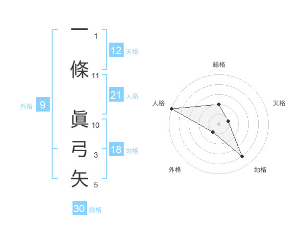 一條 眞弓矢さんを姓名の画数から五運を鑑定