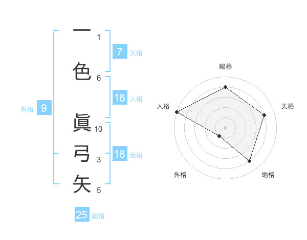 一色 眞弓矢さんを姓名の画数から五運を鑑定