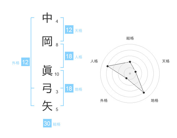 中岡 眞弓矢さんの天格は12画の1点!