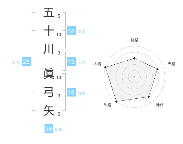 五十川 眞弓矢さんの天格は18画の4点