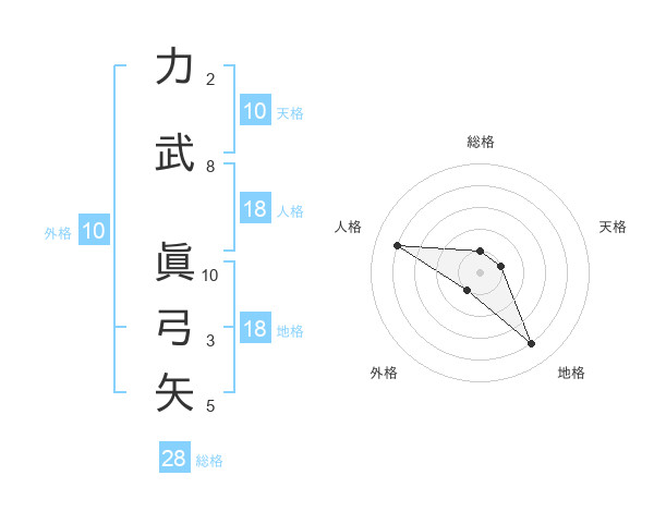 力武 眞弓矢さんを姓名の画数から五運を鑑定