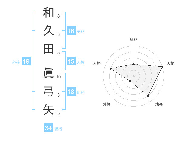 和久田 眞弓矢さんの天格は16画の5点!