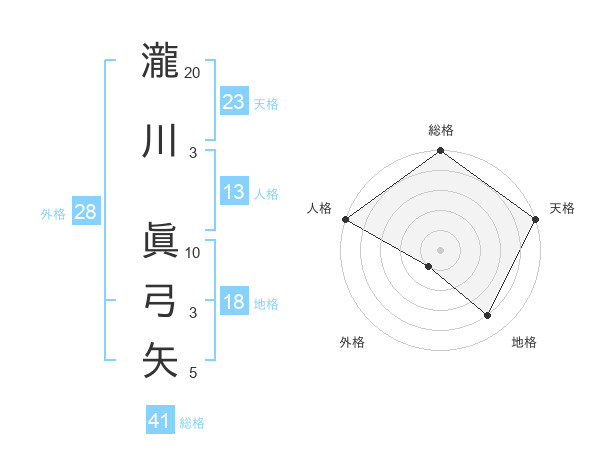 瀧川 眞弓矢さんの総格は41画の5点!