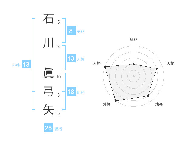 石川 眞弓矢さんを姓名の画数から五運を鑑定