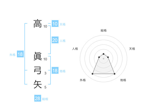 高 眞弓矢さんの外格は18画の4点!