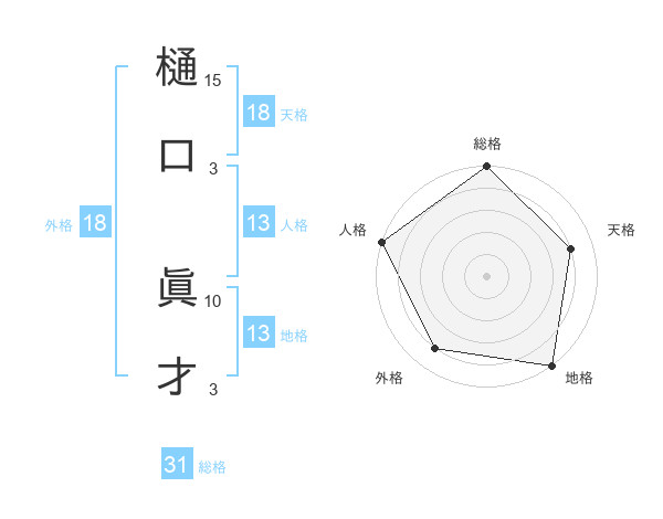 樋口 眞才さんを姓名の画数から五運を鑑定