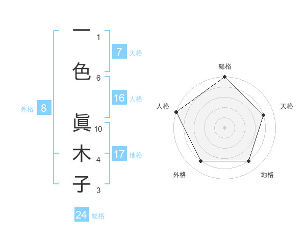 一色 眞木子さんを姓名の画数から五運を鑑定