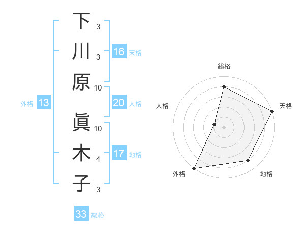 下川原 眞木子さんを姓名の画数から五運を鑑定
