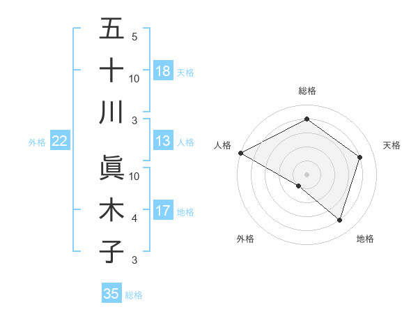 五十川 眞木子さんを姓名の画数から五運を鑑定