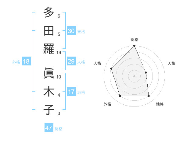 多田羅 眞木子さんを姓名の画数から五運を鑑定