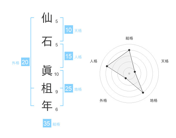 仙石 眞柤年さんを姓名の画数から五運を鑑定