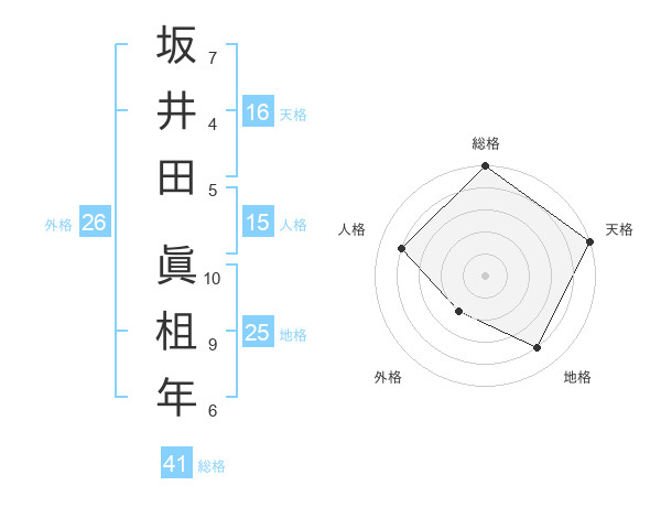 坂井田 眞柤年さんを姓名の画数から五運を鑑定