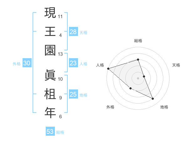現王園 眞柤年さんを姓名の画数から五運を鑑定