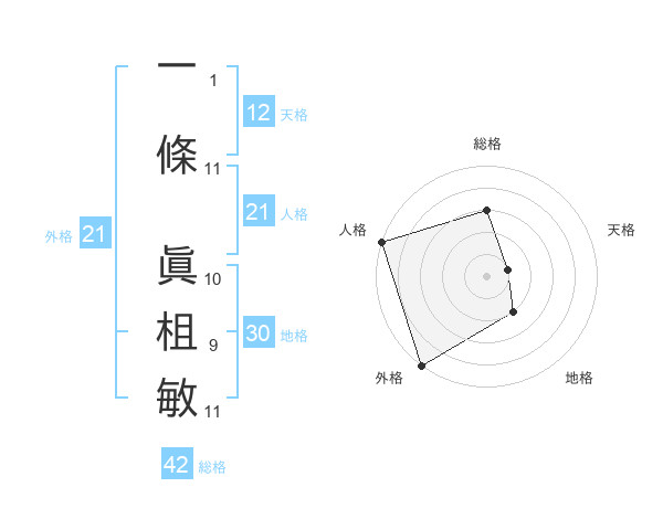 一條 眞柤敏さんの外格は21画の5点!
