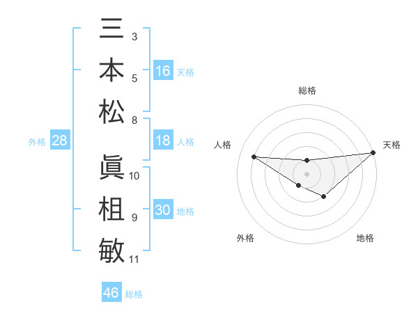 三本松 眞柤敏さんの天格は16画の5点!