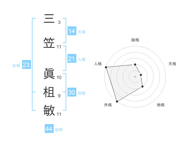 三笠 眞柤敏さんの総格は44画の2点