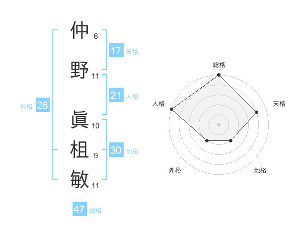 仲野 眞柤敏さんを姓名の画数から五運を鑑定