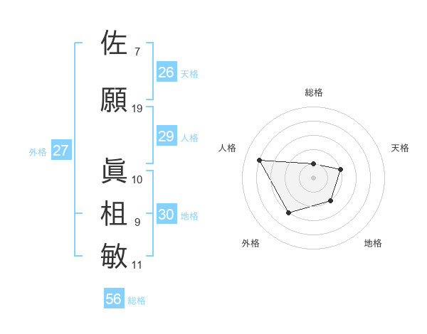 佐願 眞柤敏さんの人格は29画の4点!