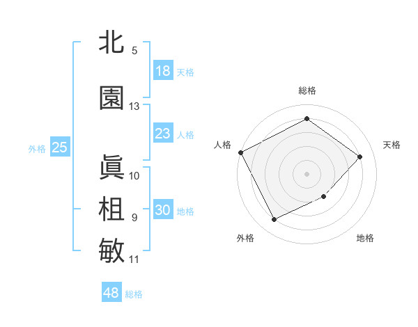 北園 眞柤敏さんを姓名の画数から五運を鑑定
