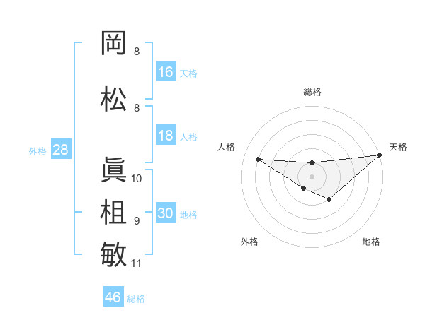 岡松 眞柤敏さんの天格は16画の5点!