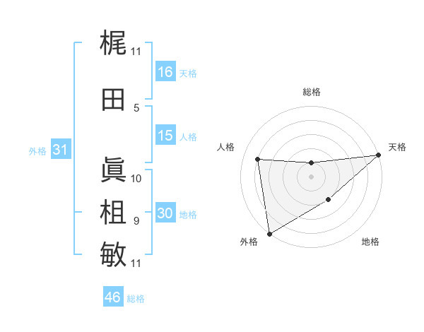 梶田 眞柤敏さんの外格は31画の5点!