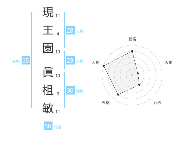 現王園 眞柤敏さんを姓名の画数から五運を鑑定