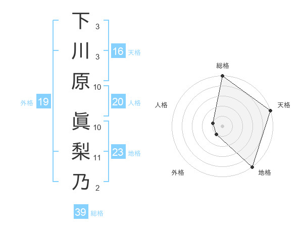 下川原 眞梨乃さんを姓名の画数から五運を鑑定