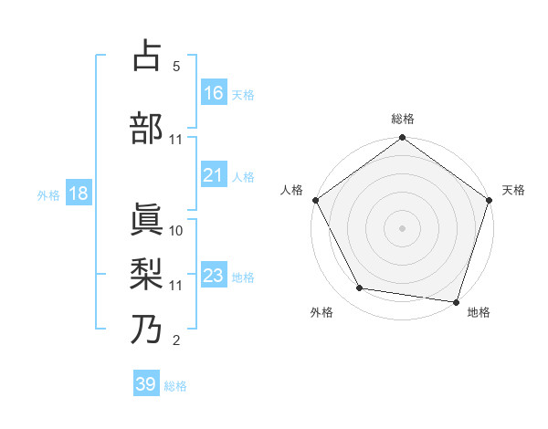 占部 眞梨乃さんを姓名の画数から五運を鑑定