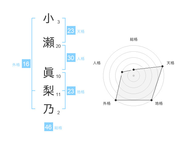 小瀬 眞梨乃さんの天格は23画の5点!