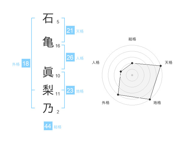 石亀 眞梨乃さんを姓名の画数から五運を鑑定