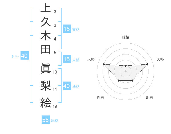 上久木田 眞梨絵さんを姓名の画数から五運を鑑定