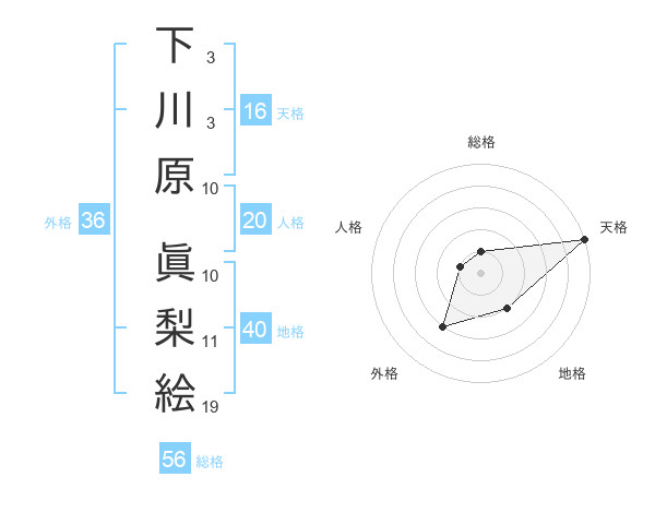 下川原 眞梨絵さんを姓名の画数から五運を鑑定