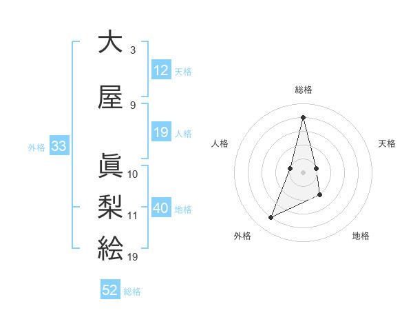 大屋 眞梨絵さんの総格は52画の4点!