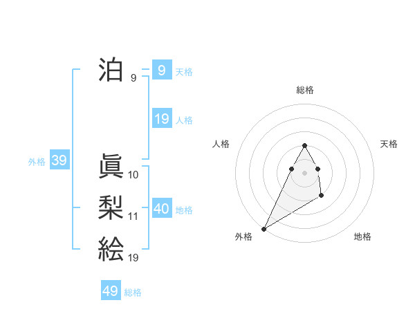 泊 眞梨絵さんを姓名の画数から五運を鑑定