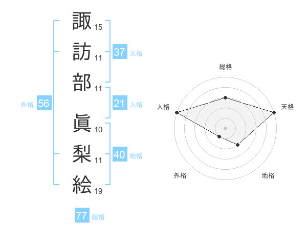 諏訪部 眞梨絵さんを姓名の画数から五運を鑑定