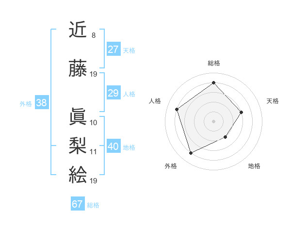 近藤 眞梨絵さんを姓名の画数から五運を鑑定