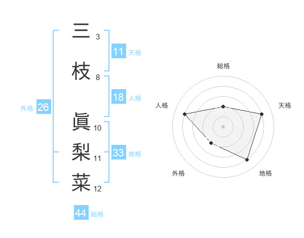 三枝 眞梨菜さんを姓名の画数から五運を鑑定