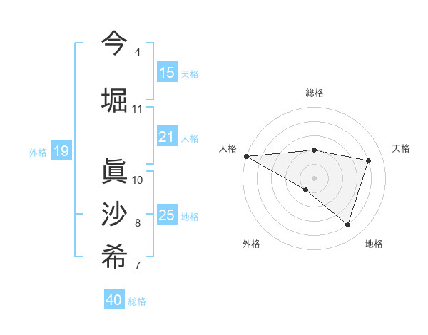 今堀 眞沙希さんを姓名の画数から五運を鑑定